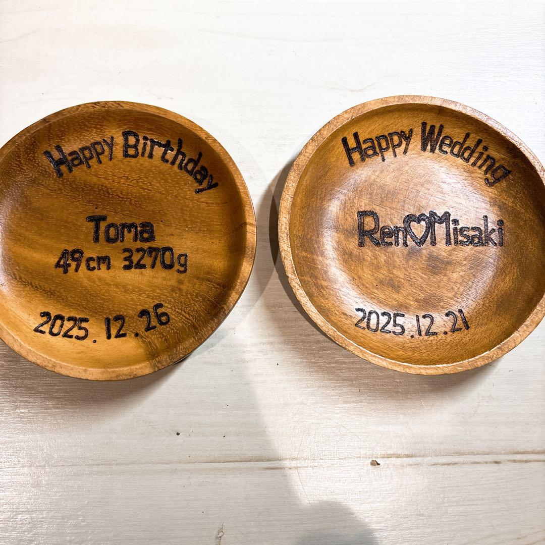 オーダーメイド名前入りカトラリー♡*世界にひとつ心を込め大切に手書きでお作りします♩ウッドバーニングで焼入れするので洗っても消えません♬毎日使う物なので小さなお子様から年配の方まで贈り物に人気☆ご出産 お誕生日 ご結婚のお祝い、インテリア 家族カップル兄弟お揃い 様々なプレゼントに♡デザインなどご相談下さい♡⃜▷商品内容◁〇スプーン ①~③450円 フォーク④~⑥550円〇コースター 500円〇ミニ木皿丸皿・四角皿(12×12×2) 800円丸深皿(10×10×3.5)900円〇丸プレート 1800円〇ランチプレート 2000円~*スプーンフォークのご注文は2点〜*組み合わせオーダーも可能結婚式のウェディングアイテムやプチギフト、卒園卒業の記念品にも*。▷デザイン◁〇スプーンフォーク・食べる部分にイラストA・襟元の記号B・持ち手部分にお名前と記号C*出生時間の時計デザインは1点750円時計デザインは食べる部分に出生時間・体重・お誕生日、持ち手にお名前が入ります♡〇お皿・コースター等デザインAや文字入れが出来ます。位置の指定がなければ中央となります。お誕生日 記念日 メッセージの焼入れも可能♡⃛デザインや文字数に応じて+100円~ですのでご相談ください♡*ひらがなカタカナローマ字がお入れできます。▷ラッピング◁簡易ラッピング50円紐ラッピング80円小分け包装は1点につき50円箱ラッピング200円(送料+100円~)▷送料◁全国一律200円~木皿・プレート300円~*プチプチ包装ご希望の方はメルカリ便850円にて包装可能ですのでお申し出下さい♪誤差が生じた際のご返金は出来ませんのでご了承ください。▷注文方法◁①こちらのページのコメントからオーダー品受付②専用ページ作成③専用ページにてオーダー内容の確認④注文&お支払い⑤商品の製作⑥発送*お名前入れはオーダー通りに致します為字体や大文字小文字も確認の上ご記入下さい*ハンドメイド作品ですので焼きむらズレなどご理解頂ける方のみご注文よろしくお願い致します名入れ 名前入れ 席札 卒団 入学 母の日 父の日 敬老の日 クリスマス ギフト 名前入り食器