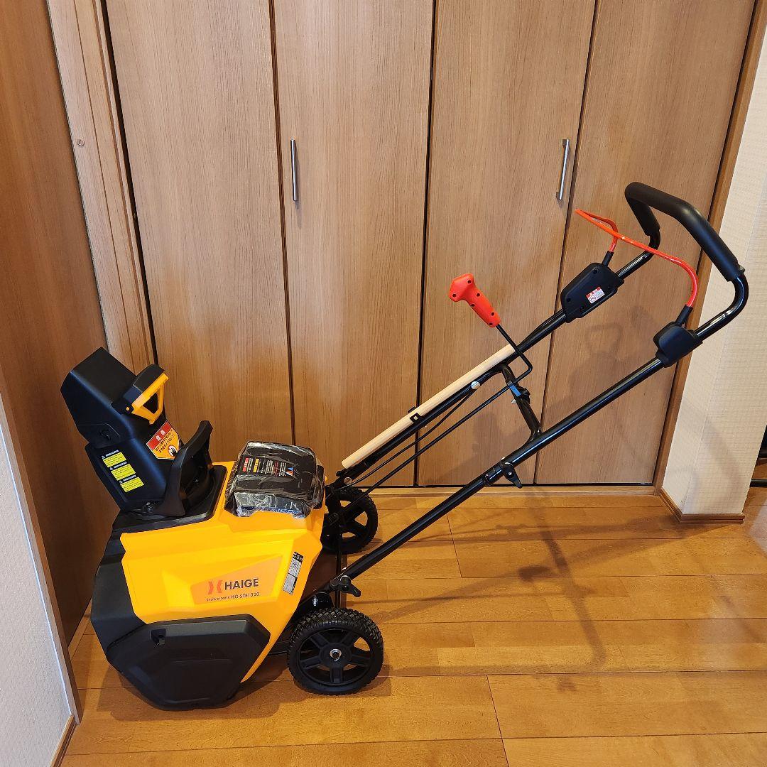 バッテリー式の除雪機です。一度使用しましたが、うちの地域では出番がすくなそうなので出品します。実際の写真は2枚目です。ハンドルは未使用の状態でしまってあります。詳細は画像をご覧ください。